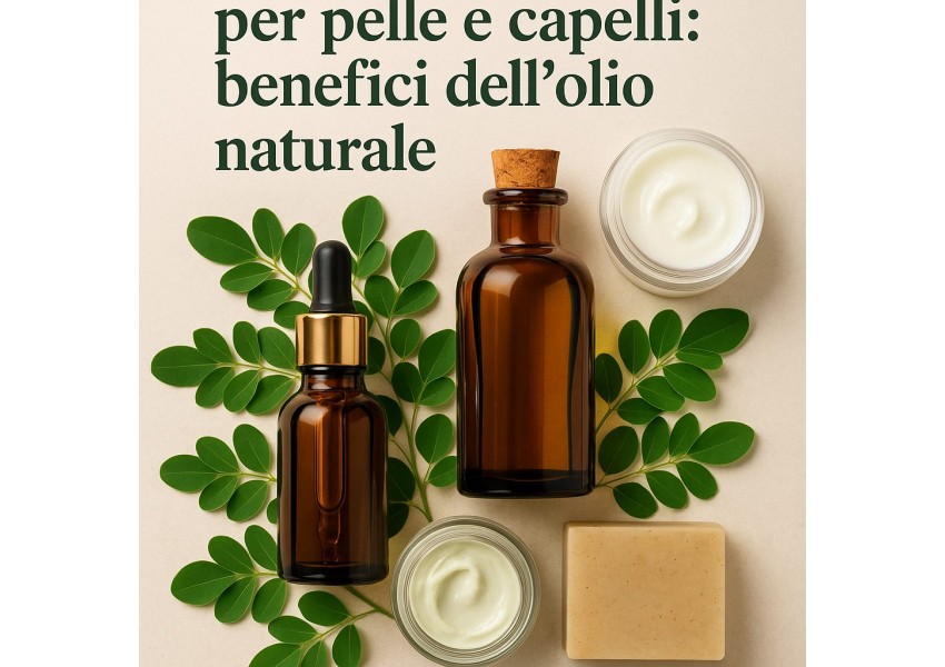 Olio di Moringa: trattamento naturale per pelle luminosa e capelli forti, ricco di vitamine e principi attivi rigeneranti.